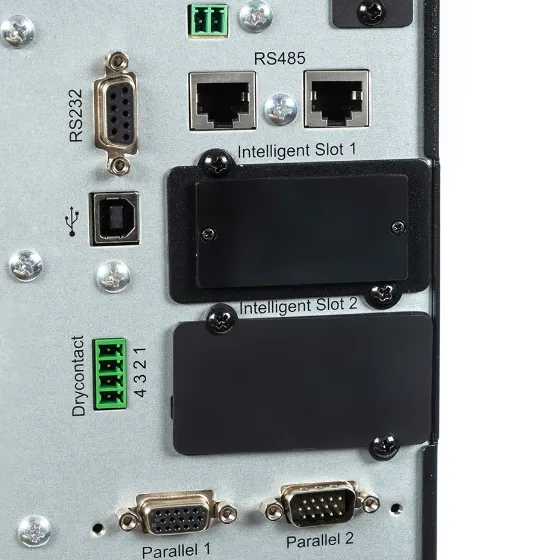 <li>Два слота расширения позволяют устанавливать дополнительные коммуникационные модули, такие как SNMP-адаптеры, релейные платы и другие устройства.</li>