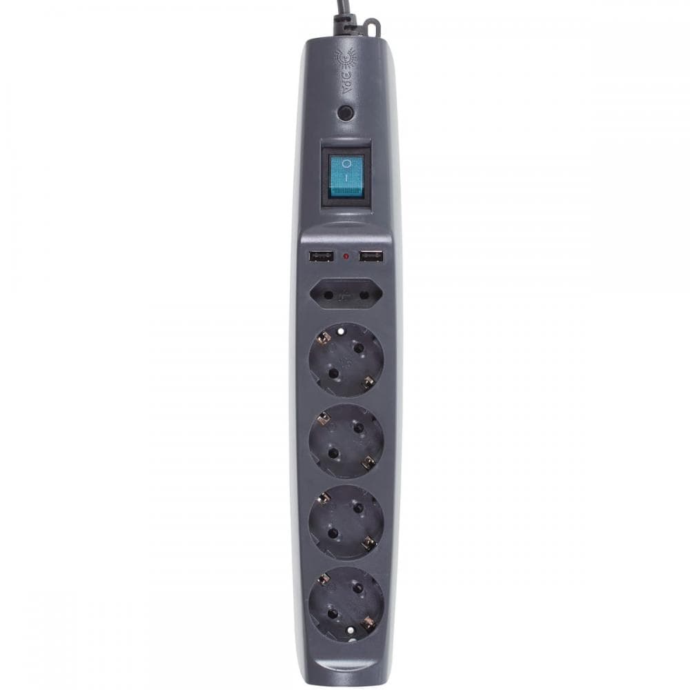 Материал корпуса сетевого фильтра — долговечный поликарбонат. Сохранит первоначальный вид спустя годы использования. Оборудован кабелем подключения длиной 5 м и сечением 0,75 мм. Черный цвет удачно впишется в любой интерьер.