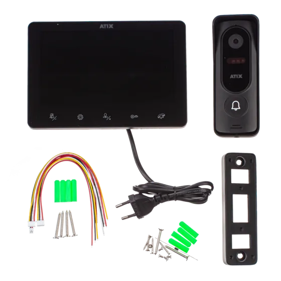 Описание <p>Комплект СVBS домофонии</p> <p><big>Монитор AT-I-M730C/T, чёрный</big></p> <ul> <li>TFT экран 7 дюймов, 1024×600</li> <li>Сенсорные кнопки управления</li> <li>Подключение 1-ой вызывной панели и камеры</li> <li>Разговор по громкой связи</li> <li>Соединение с вызывной панелью 4-проводное</li> <li>Питание AC100-240В / DC12В</li> <li>Рабочая температура от -10℃ до 50℃</li> </ul> <p><big>Вызывная панель AT-I-D51C/CR , чёрная</big></p> <ul> <li>Разрешение 1000ТВЛ</li> <li>Угол обзора 110°</li> <li>Накладной способ установки</li> <li>Защита IP65</li> </ul>